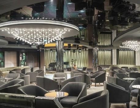 The Top Sail Lounge is the ultimate place to rest and relax after shore excursions or days at sea. Throughout the day, take in crystal-clear panoramic views of the ocean while enjoying crafted drinks, gourmet finger foods, and desserts. At night, relish in exclusive access to live music and after-dinner drinks.